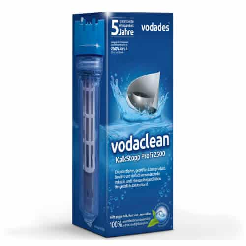 Der KalkStopp Profi 2500 verwendet die gleiche Technologie wie der Vodaclean KalkStopp Home und kann sogar Durchflussmengen von 2500 Liter pro Stunde von Kalk befreien.
